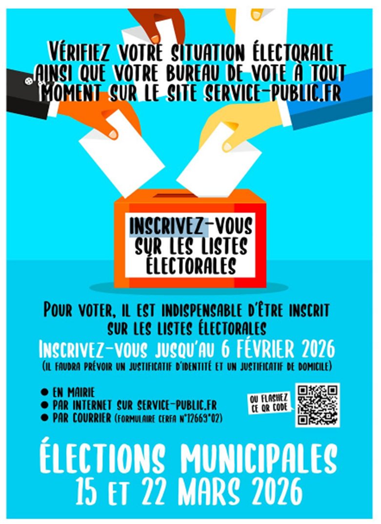 ELECTIONS MUNICIPALES : VOUS POUVEZ VOUS INSCRIRE SUR LES LISTES COMMUNALES JUSQU'AU 6 FÉVRIER 2026