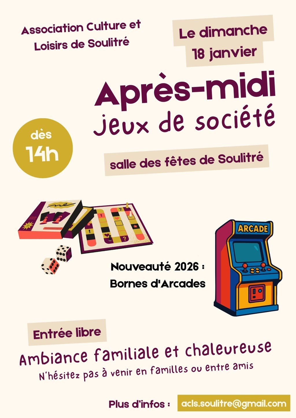 📅 Dimanche 18 janvier à partir de 14h - Salle des fêtes de Soulitré