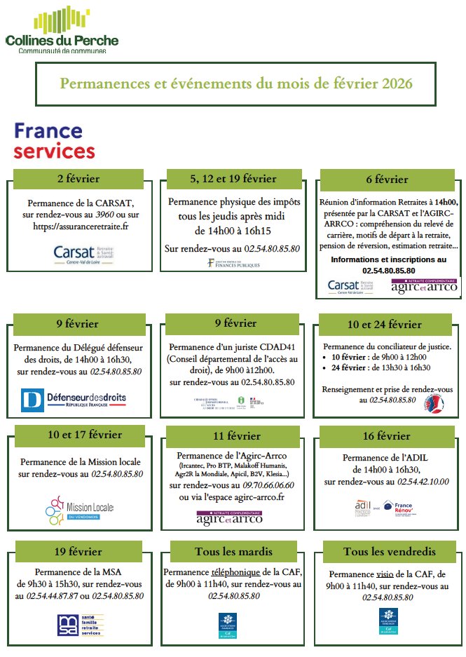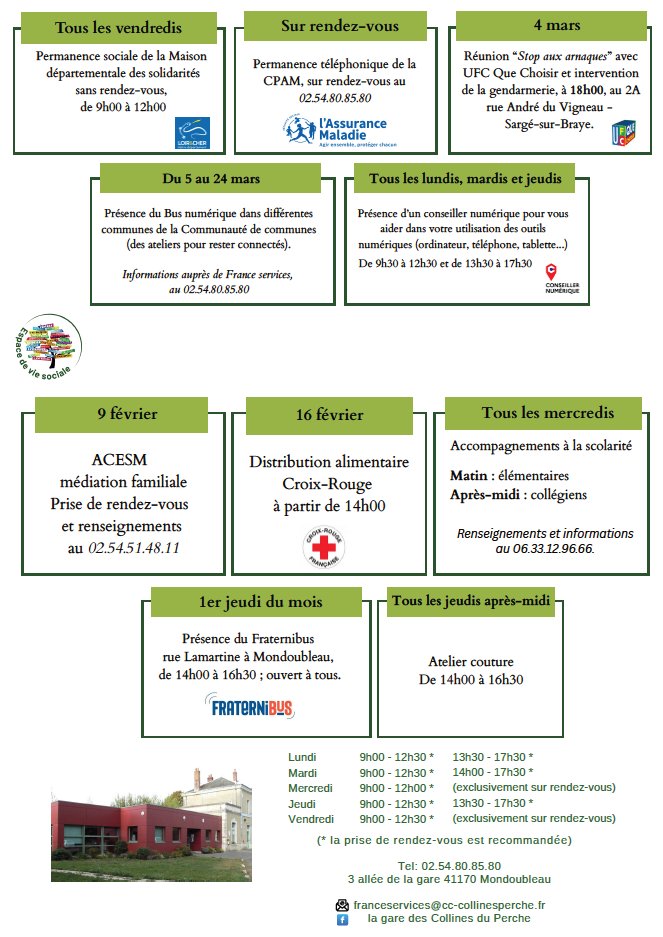 Tableau des permanences et évènements de France Services.